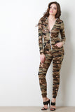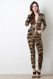Camoflauge Zip-Up Hooded Long Sleeve Jumpsuit