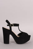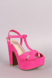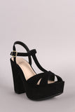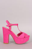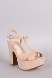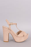 Bamboo T-Strap Open Toe Platform Chunky Heel