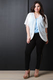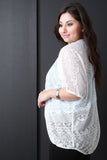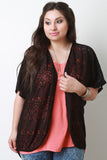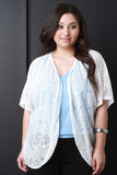 This plus size cardigan features semi-sheer fabrication, draped open front construction and short sleeves design. Finished with a high low hemline. Accessories sold separately. 92% Nylon, 8% Spandex.