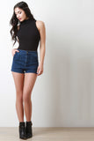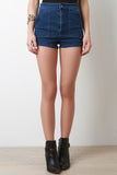 These shorts are high-waisted design, featuring two front pockets and a zipper fly and button closure. Accessories sold separately. 95% Cotton. 3% Polyester. 2% Spandex.