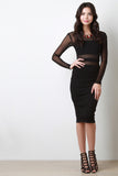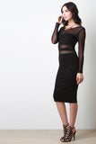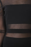 Contrast Mesh Scoop Back Long Sleeves Midi Dress