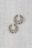 These hoop earrings feature metallic frame, etched panels, and latch closure.
