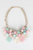 This eye-catching necklace features a colorful clustered stones pendant, chunky link-chain, and finished with an adjustable lobster hook closure. Earrings feature a teardrop-shaped stone and french hook back.