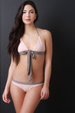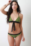 Two-Tone Halter Tie Bikini Set