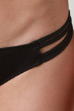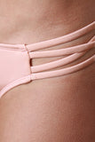 This bikini set features a halter top with crisscross corset cage center, and self-tie back. Bikini bottom features a low rise design, crisscross strappy sides, and cheeky back. Accessories sold separately. 82% Polyamid, 18% Elastan. Lining: 100% Polyester.