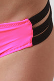This self-tie halter bikini top features a contrasting trimming with strappy longline design, hook closure at back, and removable padded cups. Bikini bottom features a low-rise cut, 3-contrasting side straps, and fully lined. Accessories sold separately. 82% Polyamid, 18% Elastan. Lining: 100% Polyester.