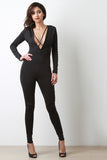 Criss Cross Slit V-Neck Long Sleeve Jumpsuit