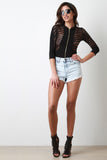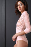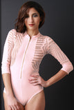 Semi-Sheer Mesh Zip-Up Long Sleeve Bodysuit