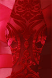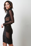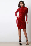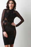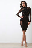 Mock Neck Semi-Sheer Velvet Filigree Dress