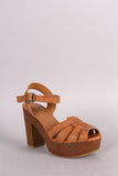 This platform and chunky heel. Fisherman toe box design. Adjustable ankle strap.
