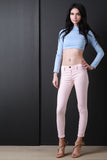These denim jeans feature low rise silhouette, decor front pockets, rear pockets, belt loops and a zipper fly with a single button closure. Finished with taper cut legs. Accessories sold separately. 98% Cotton, 2% Spandex.