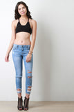 This top is strappy cut racerback construction with five buttons on the side for closure. The front portion is lined with a scoop neck. Accessories sold separately. 100% Cotton.