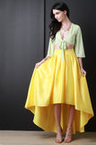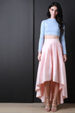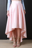 This statement-making high low maxi skirt features a high waisted wide panel with a partial elastic insert, box pleated design, and hidden zipper fastener at the back. Finished with a skirt lining and silky ribbon tie at the back. Accessories sold separately. 100% Polyester.