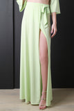 Deep Slit Wrap Side Tie Maxi Skirt