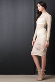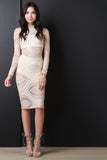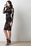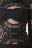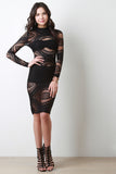 Semi-Sheer Fishnet Patterned Keyhole Midi Dress