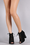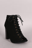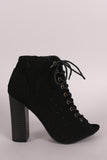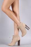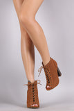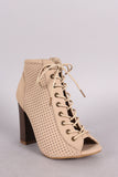 Bamboo Perforated Lace Up Chunky Heeled Booties