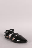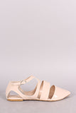 Qupid Patent Cutout Pointy Toe Ankle Strap Flat