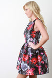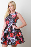 This skater dress features a floral sketch pattern print, sleeveless construction, zipper fastener at back, and skirt lining. Accessories sold separately. 100% Polyester.