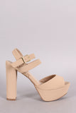Bamboo Nubuck Double Strap One Band Platform Heel