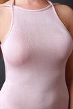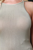 This midi dress features a round neckline, thin neck and shoulder straps, open-back silhoutte, sculpture fit, and soft jersey knit fabrication. Accessories sold separately. Made in U.S.A. 94% Rayon, 6% Spandex.