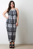Abstract Halter Front Slit Maxi Dress