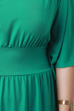 This plus size maxi dress features an empire waist band, v-neckline, and cold shoulder butterfly sleeves. Accessories sold separately. 95% Polyester, 5% Spandex.