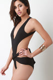 Deep V Backless Wrap Tie Bottom Swimsuit
