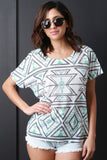 Tribal Print Round Neck Cap Sleeve High Low Top