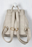 This trendy bucket style  backpack  features textured vegan leather, front flap with fringe accent, drawstring, and snap button closure. Interior features pockets and full lining. Bag is finished with adjustable backpack straps.