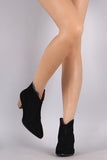 Qupid Suede Pointy Toe Chunky Heeled Booties
