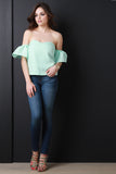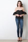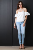 This strapless tube top features a snap-on elasticized short bell sleeves. Finished with a hidden zipper fastener at back and faux satin underlay. Accessories sold separately. Self: 100% Polyester. Lining: 100% Polyester.