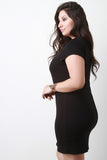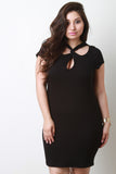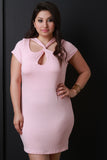 This plus size mini dress features a smooth stretchy fabric, crisscross neckline, and cap sleeve construction. Accessories sold separately. Made in U.S.A. 96% Rayon, 4% Spandex.