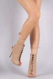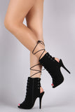 Nubuck Corset Lace Up Peep Toe Stiletto Booties