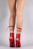 Suede Corset Lace Up Peep Toe Stiletto Booties