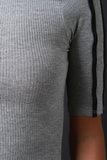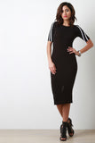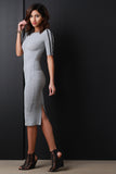• Ribbed Knit Quarter Sleeve Midi Dress