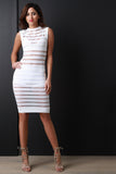 This midi length and banded hemline. Accessories sold separately. Made in U.S.A. 92% Polyester, 8% Spandex.