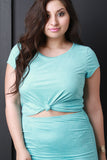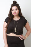 This plus size top features a soft vegan suede fabrication, cap sleeves, rounded neckline. Accessories sold separately. Made in U.S.A. 95% Polyester, 5% Spandex.