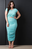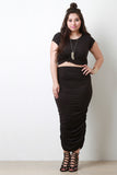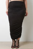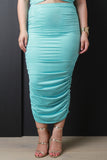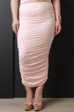 Vegan Suede Ruched Midi Skirt