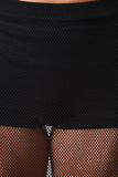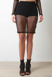 This midi skirt features a semi-sheer netted fabrication, elasticized waistband, stretchy sculpture fit, and mini-length hemline. Accessories sold separately. Made in USA. 100% Polyester.