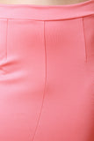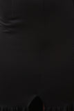 This  skirt features a ruffle hem, center front slit and exposed zipper closure.  Accessories sold separately. Made in U.S.A. 96% Polyester, 4% Spandex.