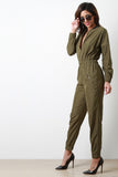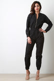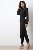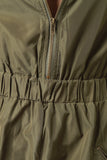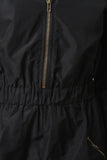 This sporty jumpsuit features windbreaker fabrication, rib knit collar, zip-up front, elasticized waist, and long sleeves construction. Finished with two front zipped pockets and elasticized cuff sleeves and leggings. Accessories sold separately. Self: 100% Polyester. Contrast: 100% Polyester.