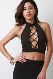Mock Neck Crisscross Lace-Up Front Halter Top