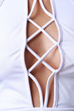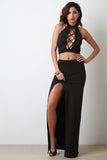 • Mock Neck Crisscross Lace-Up Front Halter Top