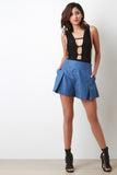 These denim shorts are high waisted design, featuring two front pockets, a side zipper closure, stud accents and finished with a wide leg design. Accessories sold separately. Shell: 100% Cotton. Lining: 100% Cotton.
