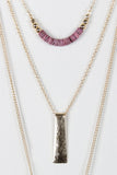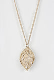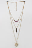 This necklace features multiple layers, shell beads, a gold tones pendant, a 3-D leaf filled with gemstones and an adjustable lobster claw closure.