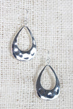 These dangle earrings feature high-polish hammered metallic frame, cut-out tear drop shape, and finished with french hook backs.
