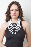 This bold statement necklace features multiple layered strands of round beads and adjustable lobster hook closure. Finished with matching earrings.