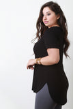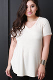 Ribbed Knit V-Neck Short Sleeve High-Low Top