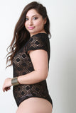 Grid Pattern Round Neck Lace Bodysuit