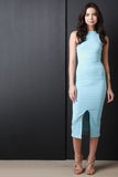 Striped Texture Round Neck Midi Dress
